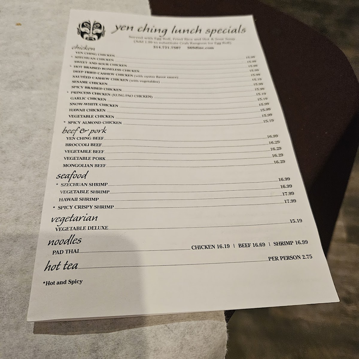 Yen Ching Menu